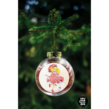 Candy, Στολίδι Χριστουγεννιάτικη μπάλα δένδρου διάφανη με κόκκινο γέμισμα 8cm