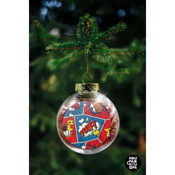 Comic boom!, Στολίδι Χριστουγεννιάτικη μπάλα δένδρου διάφανη με κόκκινο γέμισμα 8cm