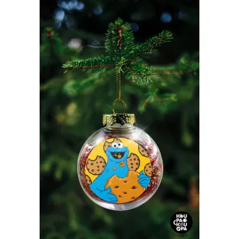 Cookie Monster, Στολίδι Χριστουγεννιάτικη μπάλα δένδρου διάφανη με κόκκινο γέμισμα 8cm