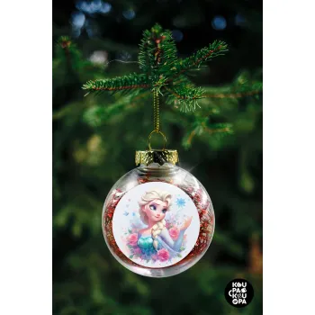 Elsa Princess, Στολίδι Χριστουγεννιάτικη μπάλα δένδρου διάφανη με κόκκινο γέμισμα 8cm