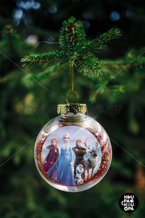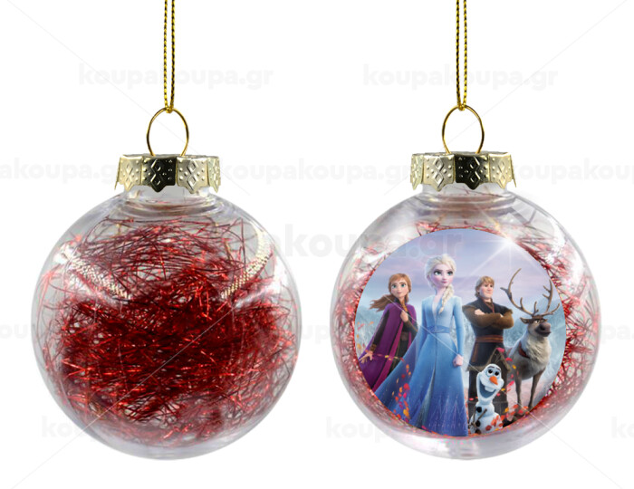 Frozen, Στολίδι Χριστουγεννιάτικη μπάλα δένδρου διάφανη με κόκκινο γέμισμα 8cm