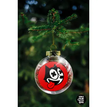 helix the cat, Στολίδι Χριστουγεννιάτικη μπάλα δένδρου διάφανη με κόκκινο γέμισμα 8cm