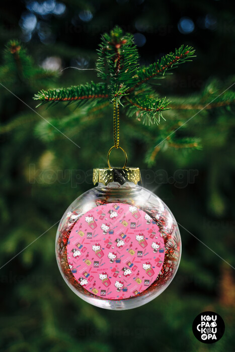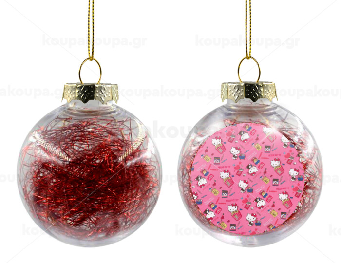 Hello kitty, Στολίδι Χριστουγεννιάτικη μπάλα δένδρου διάφανη με κόκκινο γέμισμα 8cm
