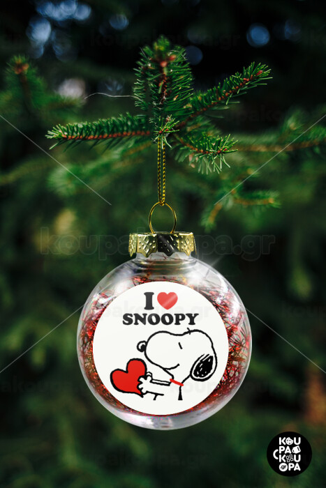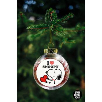 I LOVE SNOOPY, Στολίδι Χριστουγεννιάτικη μπάλα δένδρου διάφανη με κόκκινο γέμισμα 8cm