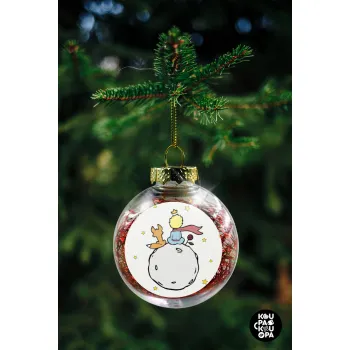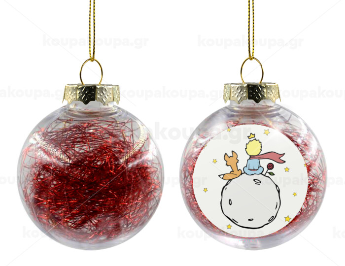 Little prince, Στολίδι Χριστουγεννιάτικη μπάλα δένδρου διάφανη με κόκκινο γέμισμα 8cm