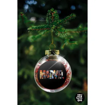 MARVEL Black, Στολίδι Χριστουγεννιάτικη μπάλα δένδρου διάφανη με κόκκινο γέμισμα 8cm