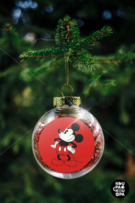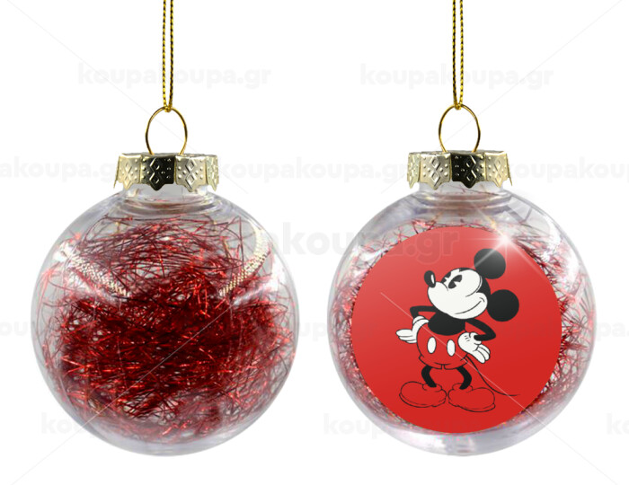 Mickey Classic, Στολίδι Χριστουγεννιάτικη μπάλα δένδρου διάφανη με κόκκινο γέμισμα 8cm