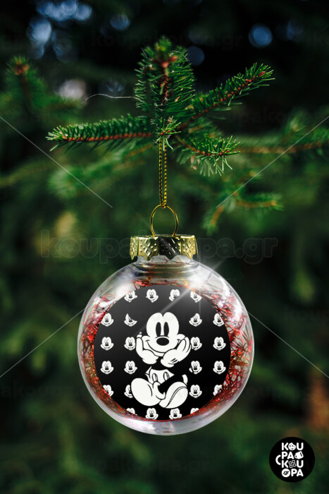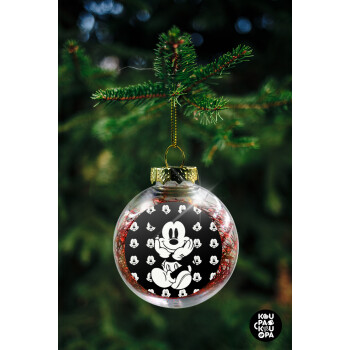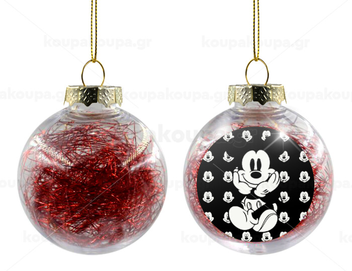 Mickey, Στολίδι Χριστουγεννιάτικη μπάλα δένδρου διάφανη με κόκκινο γέμισμα 8cm