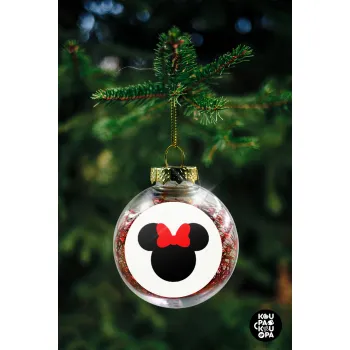 Minnie head, Στολίδι Χριστουγεννιάτικη μπάλα δένδρου διάφανη με κόκκινο γέμισμα 8cm