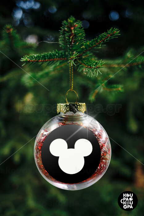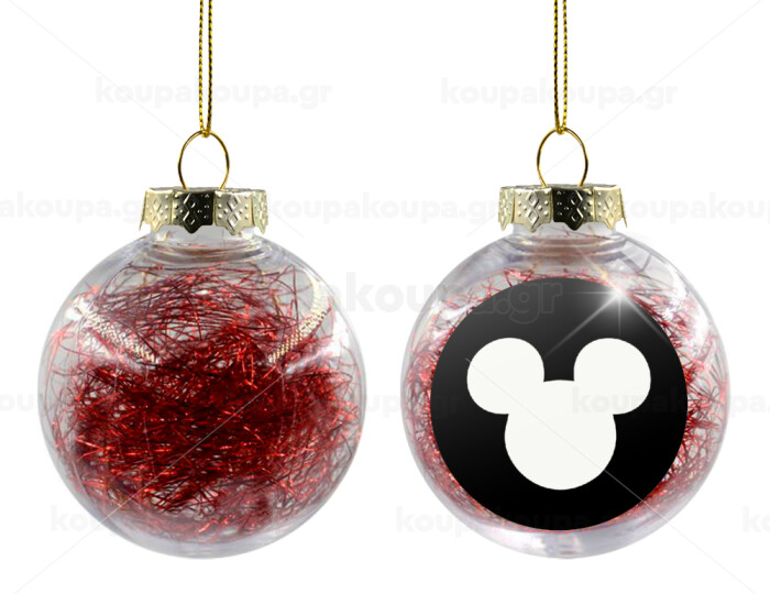 mouse man, Στολίδι Χριστουγεννιάτικη μπάλα δένδρου διάφανη με κόκκινο γέμισμα 8cm