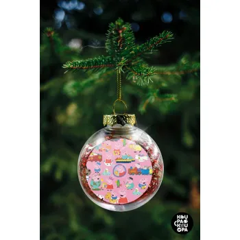 Peppa pig Characters, Στολίδι Χριστουγεννιάτικη μπάλα δένδρου διάφανη με κόκκινο γέμισμα 8cm