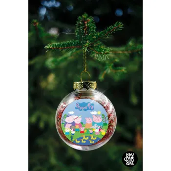 Peppa pig Family, Στολίδι Χριστουγεννιάτικη μπάλα δένδρου διάφανη με κόκκινο γέμισμα 8cm