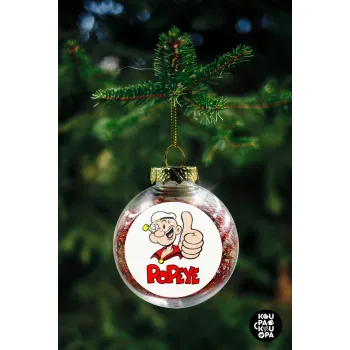 Popeye the sailor man, Στολίδι Χριστουγεννιάτικη μπάλα δένδρου διάφανη με κόκκινο γέμισμα 8cm