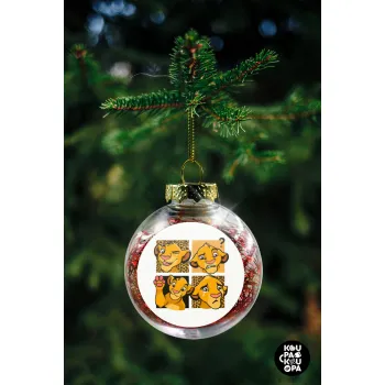 Simba, lion king, Στολίδι Χριστουγεννιάτικη μπάλα δένδρου διάφανη με κόκκινο γέμισμα 8cm