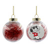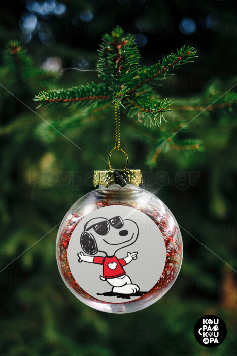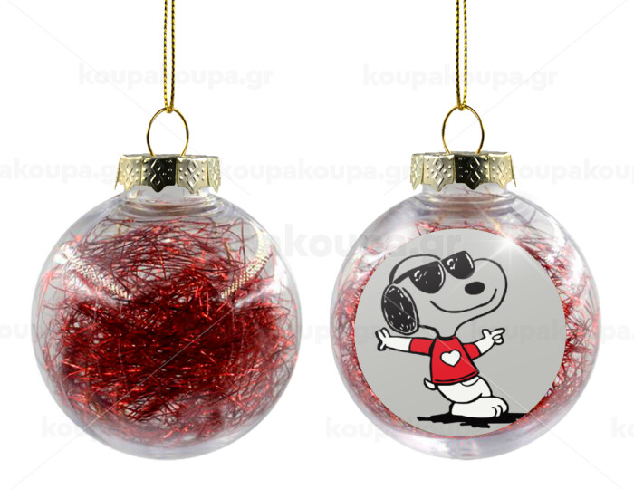 Snoopy καρδούλα, Στολίδι Χριστουγεννιάτικη μπάλα δένδρου διάφανη με κόκκινο γέμισμα 8cm