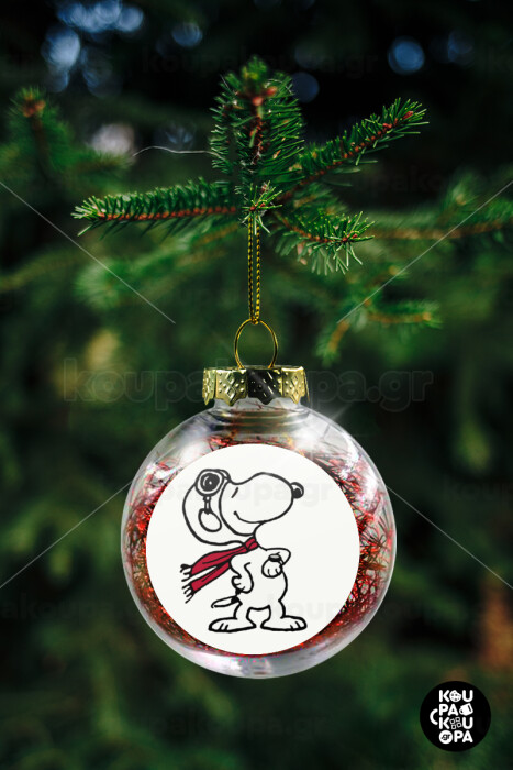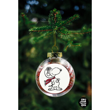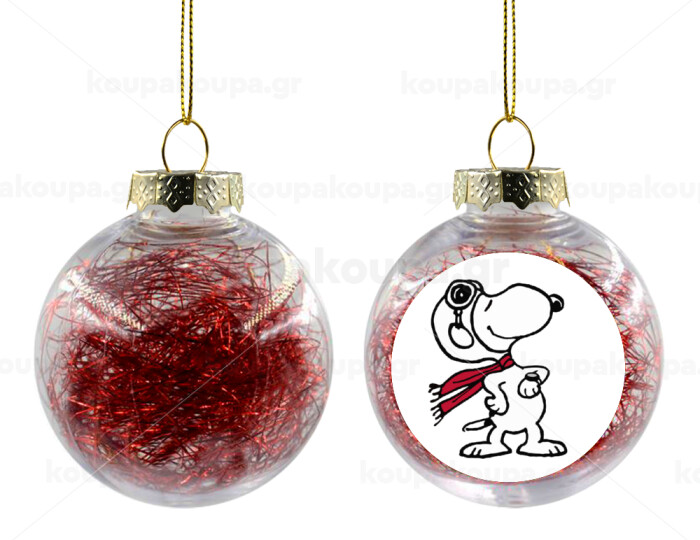 Snoopy ο πιλότος, Στολίδι Χριστουγεννιάτικη μπάλα δένδρου διάφανη με κόκκινο γέμισμα 8cm