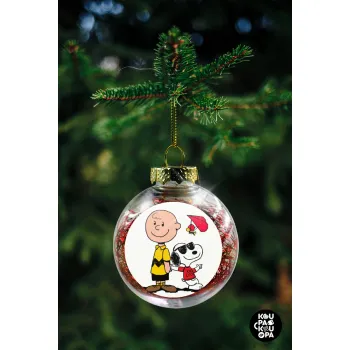 Snoopy & Joe, Στολίδι Χριστουγεννιάτικη μπάλα δένδρου διάφανη με κόκκινο γέμισμα 8cm