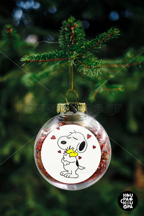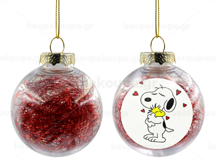 Snoopy Love, Στολίδι Χριστουγεννιάτικη μπάλα δένδρου διάφανη με κόκκινο γέμισμα 8cm