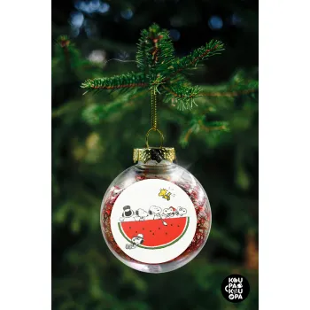 Snoopy summer, Στολίδι Χριστουγεννιάτικη μπάλα δένδρου διάφανη με κόκκινο γέμισμα 8cm
