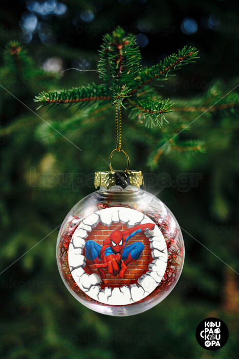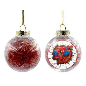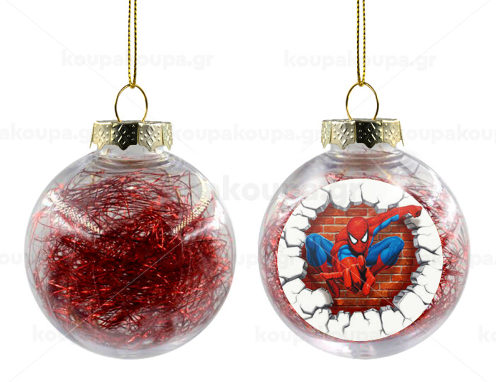 Spiderman wall, Στολίδι Χριστουγεννιάτικη μπάλα δένδρου διάφανη με κόκκινο γέμισμα 8cm