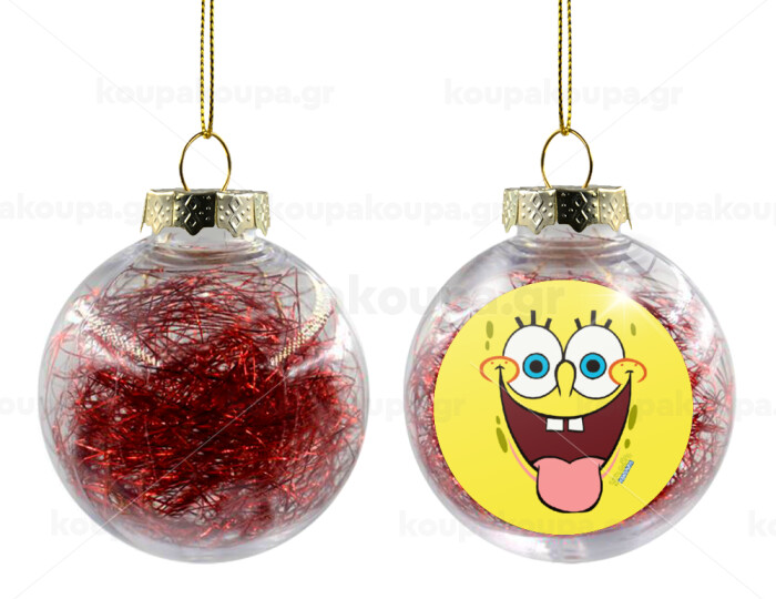 Μπομπ Σφουγγαράκης χαμόγελο, Στολίδι Χριστουγεννιάτικη μπάλα δένδρου διάφανη με κόκκινο γέμισμα 8cm