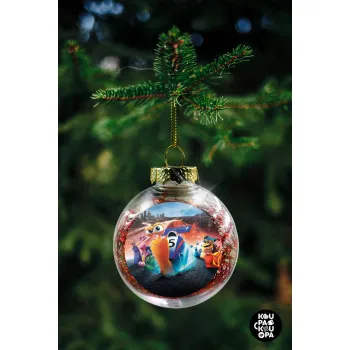 Turbo, Στολίδι Χριστουγεννιάτικη μπάλα δένδρου διάφανη με κόκκινο γέμισμα 8cm