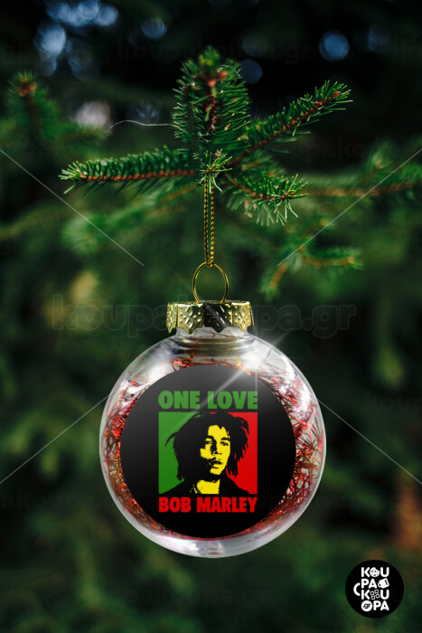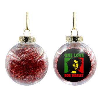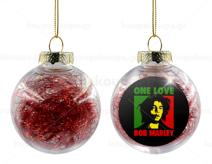 Bob marley, one love, Στολίδι Χριστουγεννιάτικη μπάλα δένδρου διάφανη με κόκκινο γέμισμα 8cm