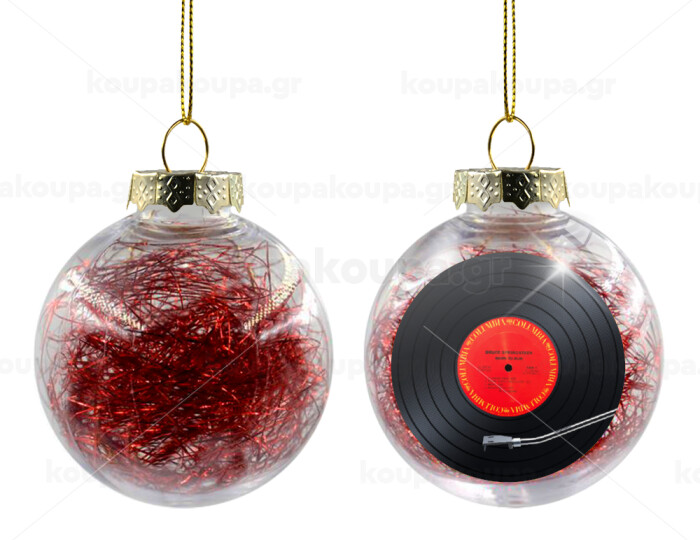 Columbia records bruce springsteen, Στολίδι Χριστουγεννιάτικη μπάλα δένδρου διάφανη με κόκκινο γέμισμα 8cm