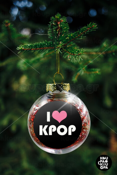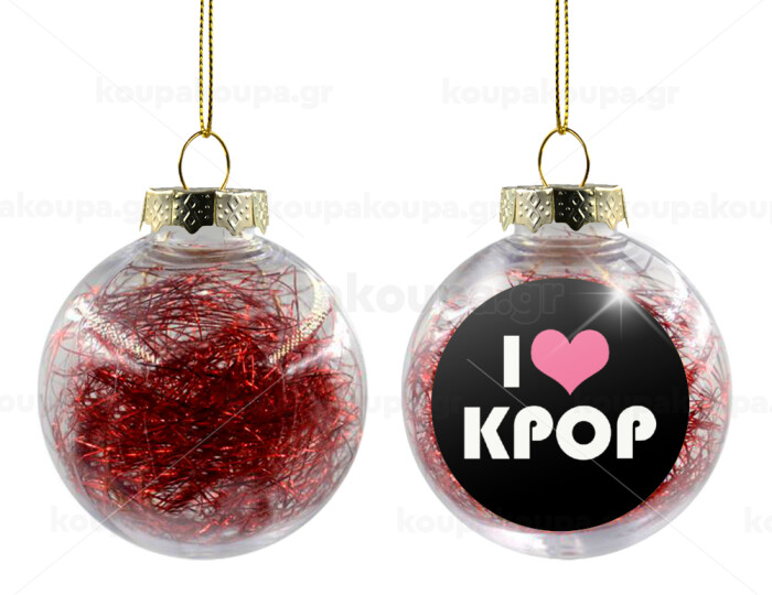 I Love KPOP, Στολίδι Χριστουγεννιάτικη μπάλα δένδρου διάφανη με κόκκινο γέμισμα 8cm