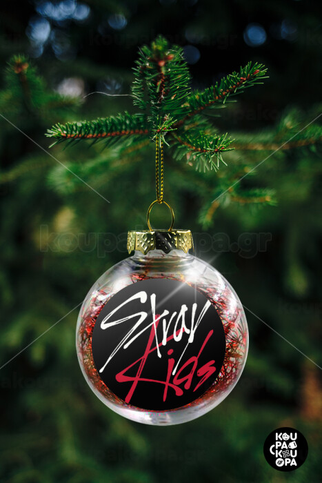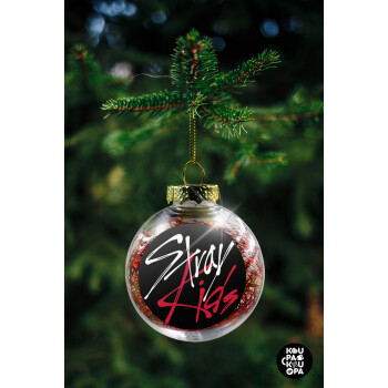 Stray Kids, Στολίδι Χριστουγεννιάτικη μπάλα δένδρου διάφανη με κόκκινο γέμισμα 8cm