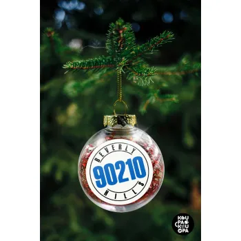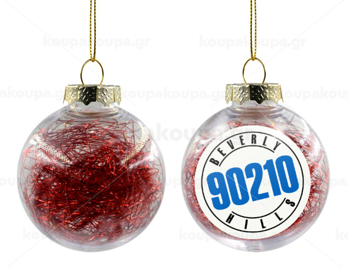 Beverly Hills, 90210, Στολίδι Χριστουγεννιάτικη μπάλα δένδρου διάφανη με κόκκινο γέμισμα 8cm