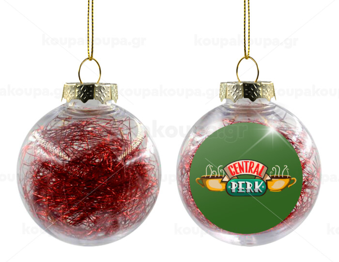 Central perk, Στολίδι Χριστουγεννιάτικη μπάλα δένδρου διάφανη με κόκκινο γέμισμα 8cm