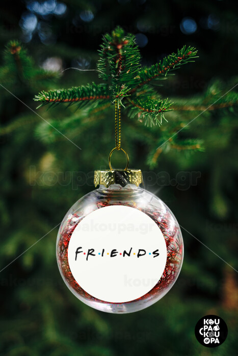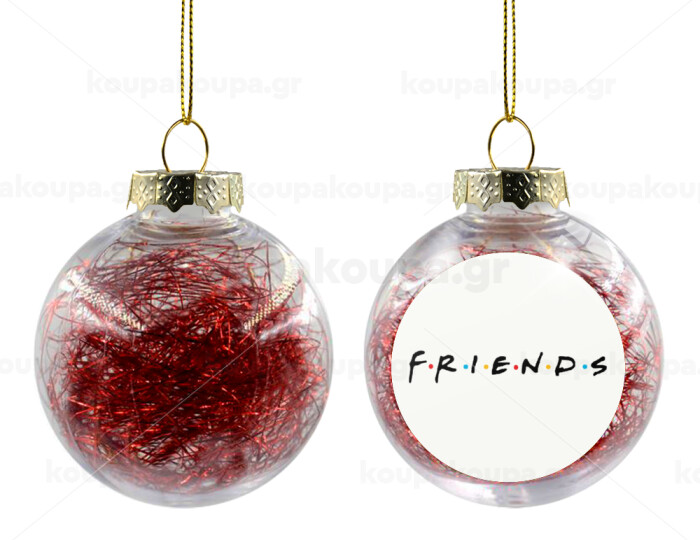 Friends, Στολίδι Χριστουγεννιάτικη μπάλα δένδρου διάφανη με κόκκινο γέμισμα 8cm