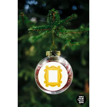 Friends frame, Στολίδι Χριστουγεννιάτικη μπάλα δένδρου διάφανη με κόκκινο γέμισμα 8cm
