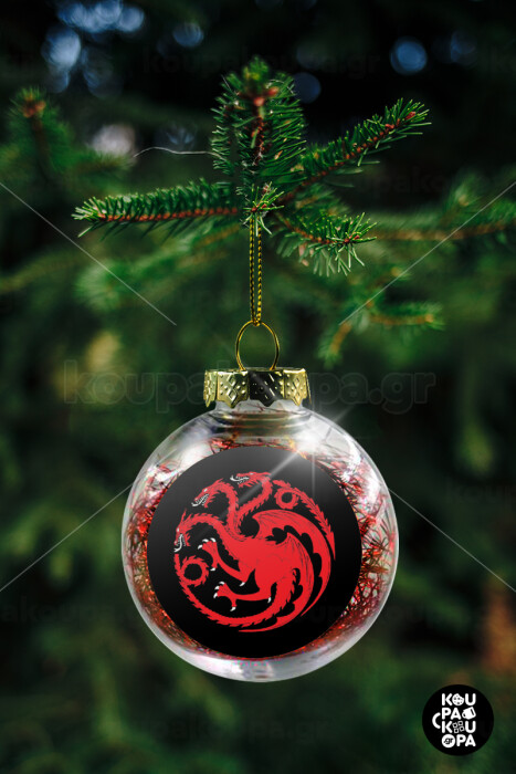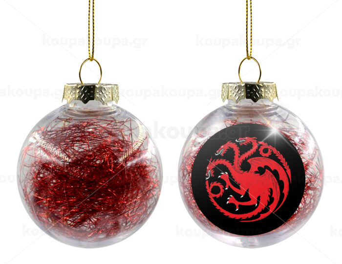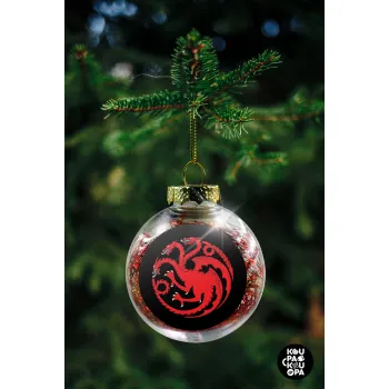 GOT House Targaryen, Fire Blood, Στολίδι Χριστουγεννιάτικη μπάλα δένδρου διάφανη με κόκκινο γέμισμα 8cm