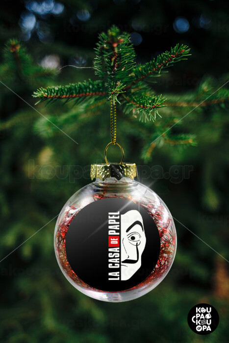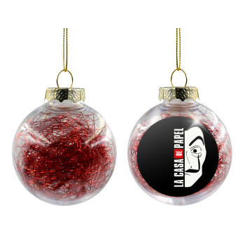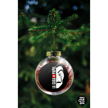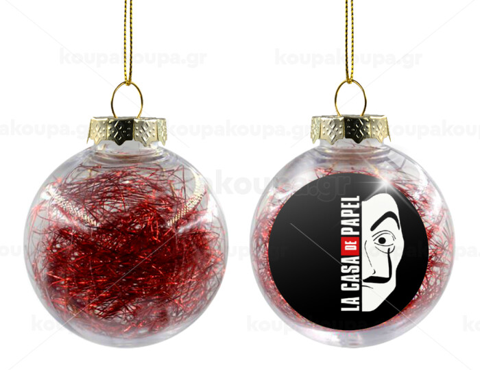 La casa de papel vertical, Στολίδι Χριστουγεννιάτικη μπάλα δένδρου διάφανη με κόκκινο γέμισμα 8cm