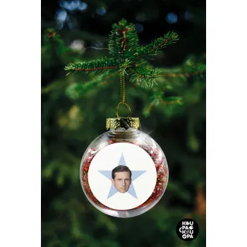 michael the office star, Στολίδι Χριστουγεννιάτικη μπάλα δένδρου διάφανη με κόκκινο γέμισμα 8cm