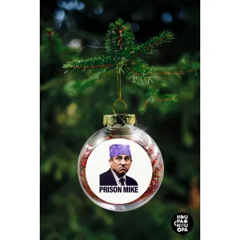 Prison Mike The office, Στολίδι Χριστουγεννιάτικη μπάλα δένδρου διάφανη με κόκκινο γέμισμα 8cm