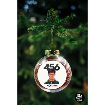 Squid game 456 Gi-Hun, Στολίδι Χριστουγεννιάτικη μπάλα δένδρου διάφανη με κόκκινο γέμισμα 8cm