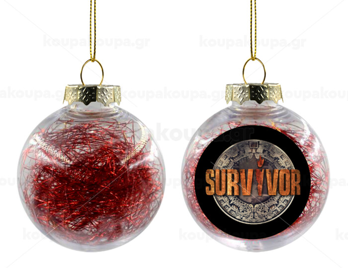 Survivor, Στολίδι Χριστουγεννιάτικη μπάλα δένδρου διάφανη με κόκκινο γέμισμα 8cm