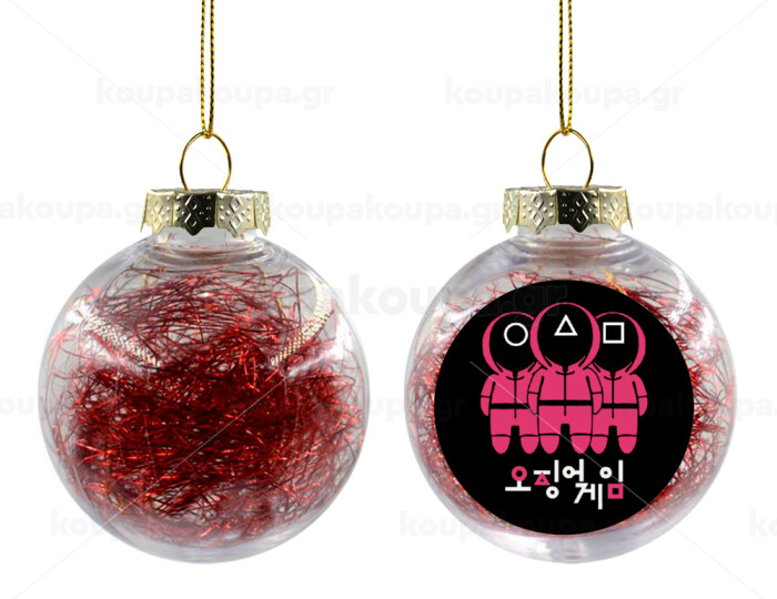 The squid game, Στολίδι Χριστουγεννιάτικη μπάλα δένδρου διάφανη με κόκκινο γέμισμα 8cm