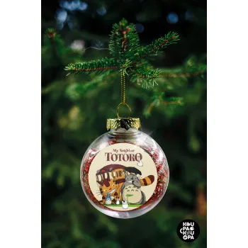 Totoro and Cat, Στολίδι Χριστουγεννιάτικη μπάλα δένδρου διάφανη με κόκκινο γέμισμα 8cm