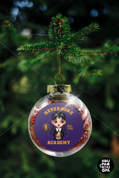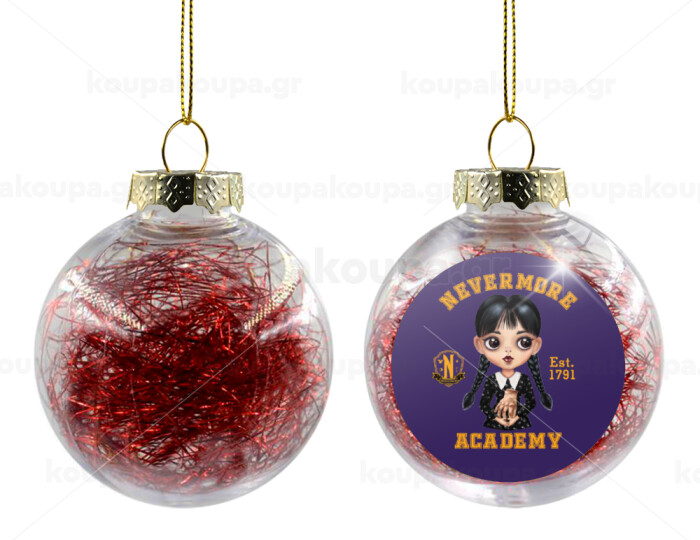 Wednesday Adams, nevermore, Στολίδι Χριστουγεννιάτικη μπάλα δένδρου διάφανη με κόκκινο γέμισμα 8cm