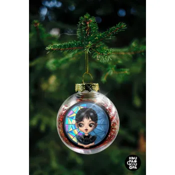 Wednesday big eyes, Στολίδι Χριστουγεννιάτικη μπάλα δένδρου διάφανη με κόκκινο γέμισμα 8cm