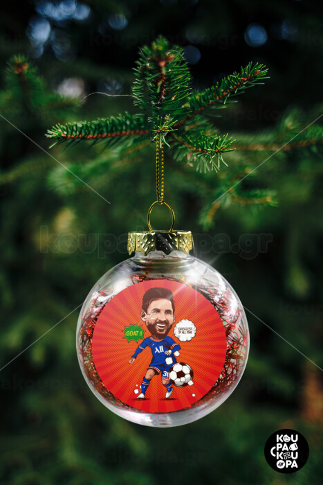 Lionel Messi drawing, Στολίδι Χριστουγεννιάτικη μπάλα δένδρου διάφανη με κόκκινο γέμισμα 8cm