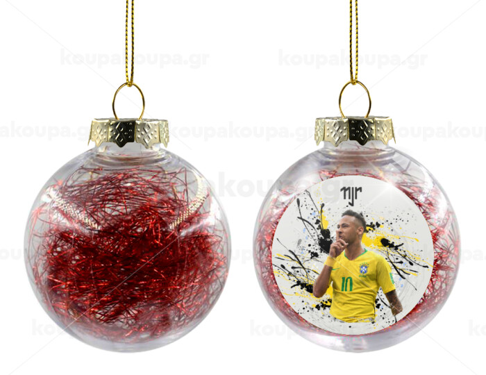 Neymar JR, Στολίδι Χριστουγεννιάτικη μπάλα δένδρου διάφανη με κόκκινο γέμισμα 8cm