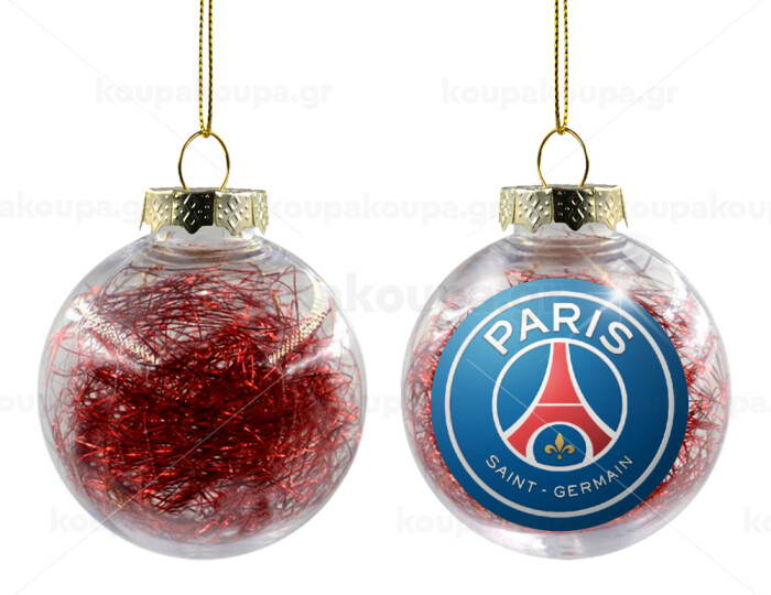 Paris Saint-Germain F.C., Στολίδι Χριστουγεννιάτικη μπάλα δένδρου διάφανη με κόκκινο γέμισμα 8cm
