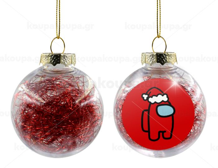 Among US Santa, Στολίδι Χριστουγεννιάτικη μπάλα δένδρου διάφανη με κόκκινο γέμισμα 8cm