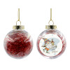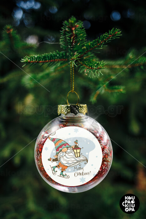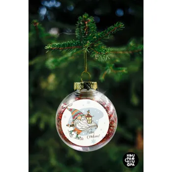 Christmas nordic gnomes, Στολίδι Χριστουγεννιάτικη μπάλα δένδρου διάφανη με κόκκινο γέμισμα 8cm