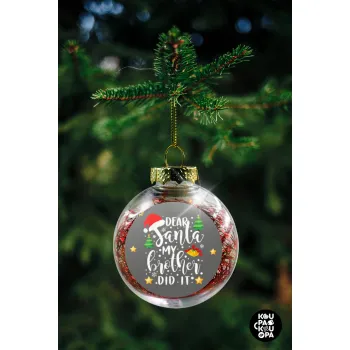 Dear santa my Brother did it, Στολίδι Χριστουγεννιάτικη μπάλα δένδρου διάφανη με κόκκινο γέμισμα 8cm